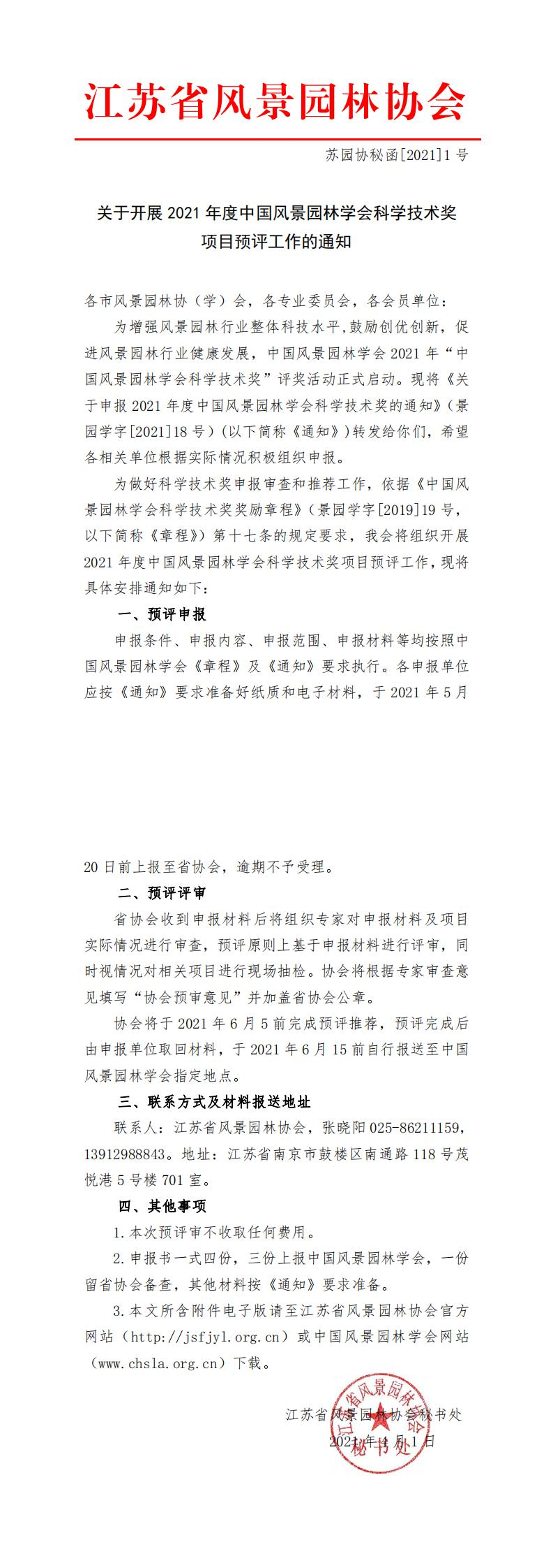 关于开展2021年度中国风景园林学会科学技术奖项目预评工作的通知