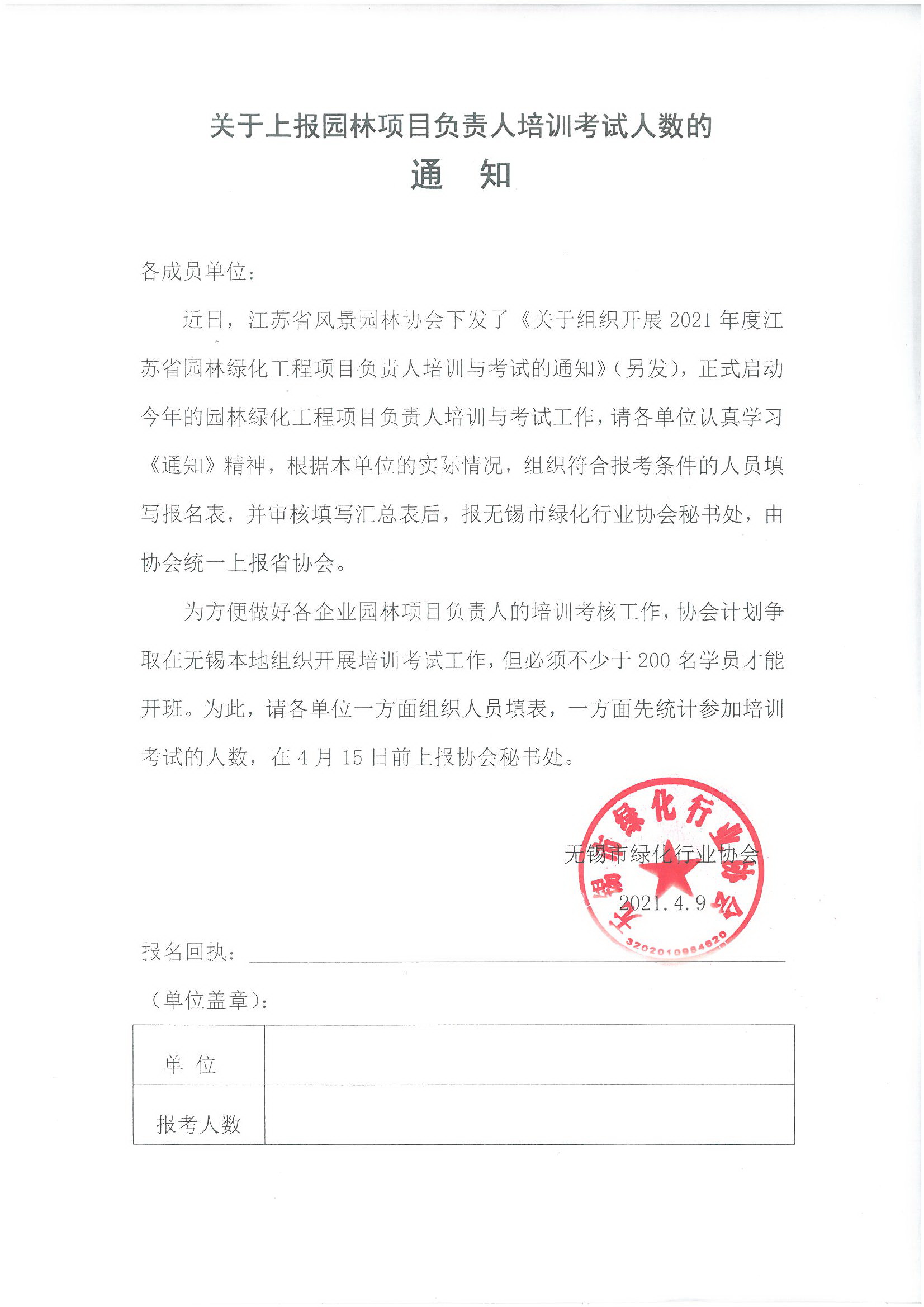 江苏省风景园林协会关于组织开展2021年度江苏省园林绿化工程项目负责人培训与考试的通知 (点击文章标题可在线预览或下载文件)